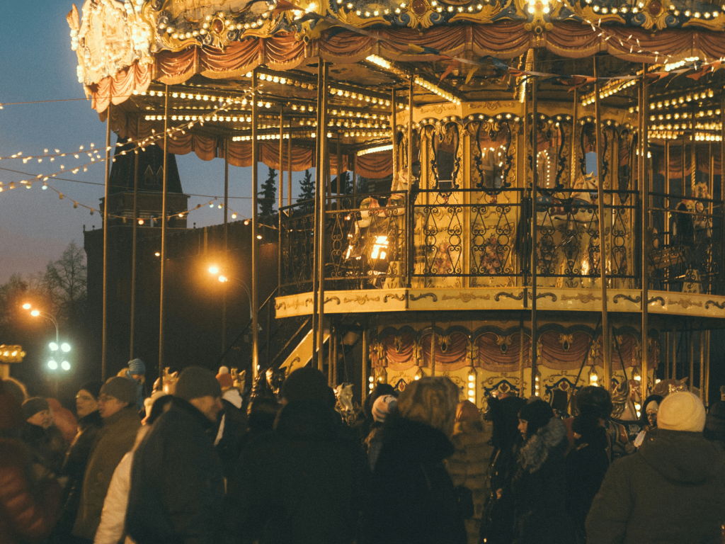 From the upper level, guests enjoy an elevated, open-air perspective that transforms an ordinary carousel ride into something unforgettable. By day, they can take in sweeping vistas of bustling crowds, colourful tents, or scenic parklands; by night, they’ll marvel at twinkling lights, illuminated attractions, and the festive glow of below.